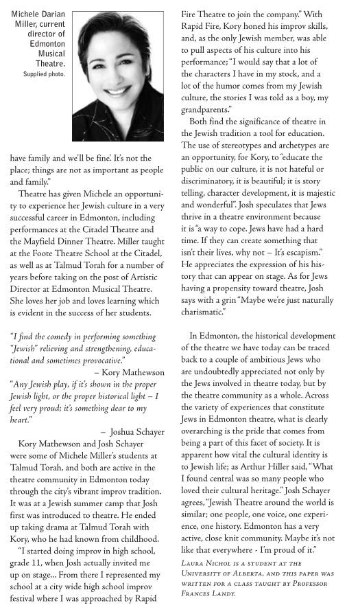 One question that I hear quite often after a performance is How and When I started doing improvisation. I was surprised to find the story published in a 2008 article titled “Drawing Back the Curtain: Jewish Theatre on the Edmonton Stage”, written by the extremely talented Laura Nichol. Timely, in that only a month ago me and Michele Miller were teaching improvisation together at the Slow Flash Mob event put on by Rapid Fire Theatre’s Amy Shostak. I don’t think that I ever saw this article in print, but I am happy to have stumbled across it again 5 years later. Today, it serves as a memory, that where you are is a result of those that helped you get there. Thanks Shecky.