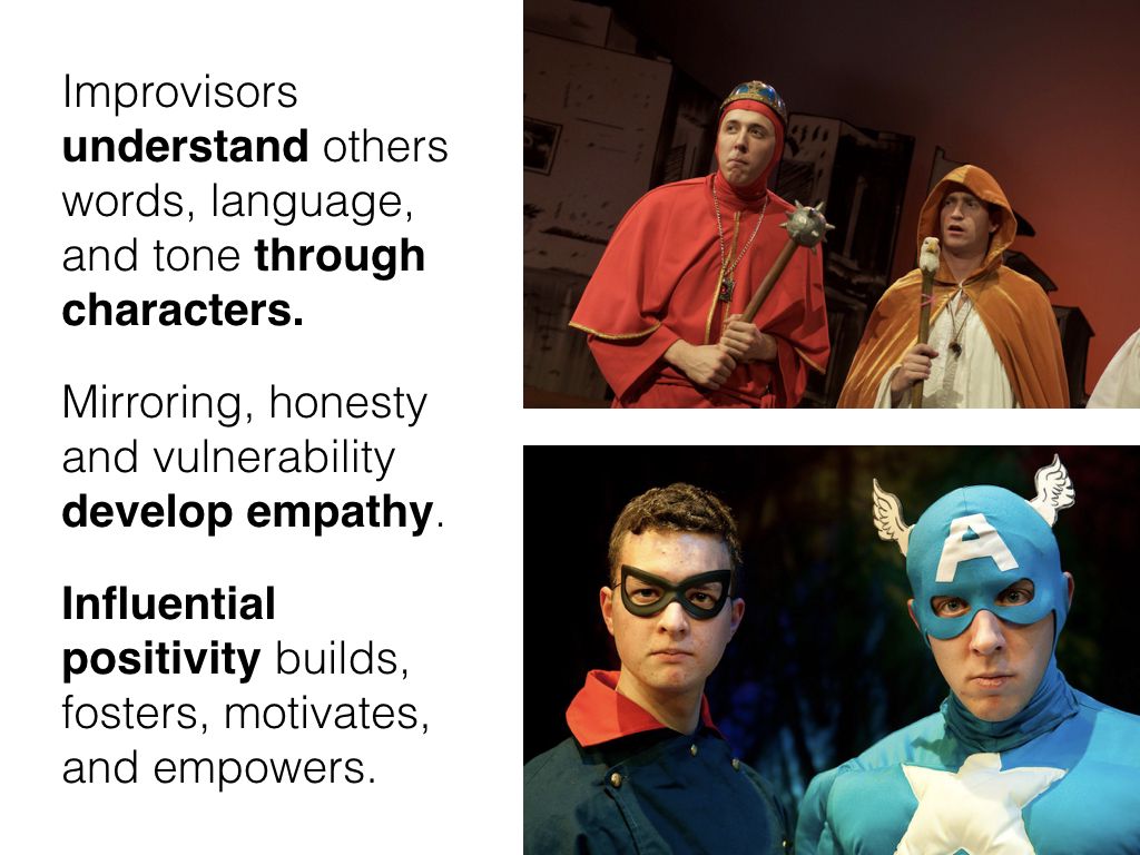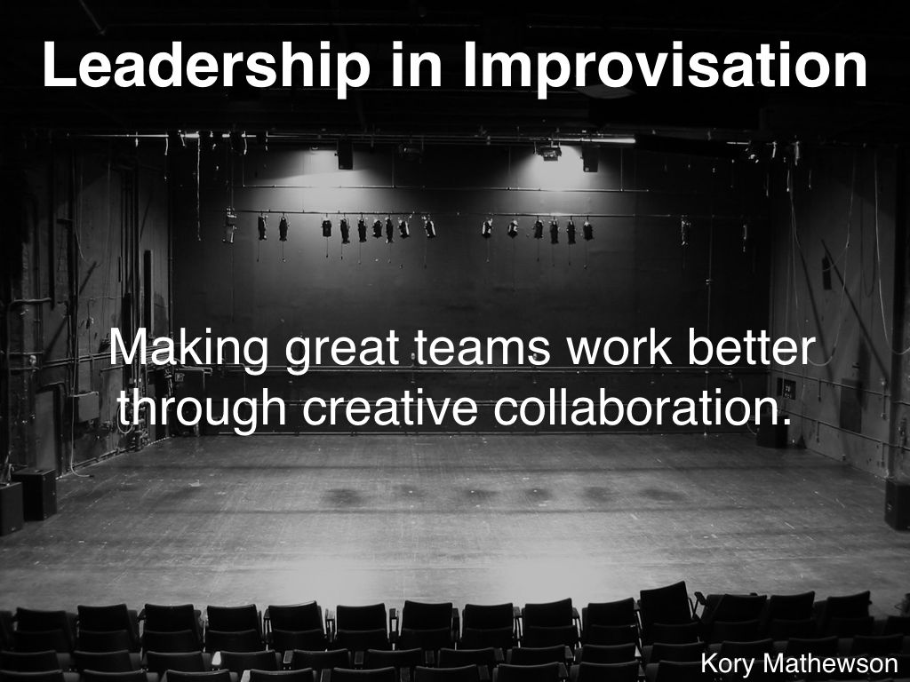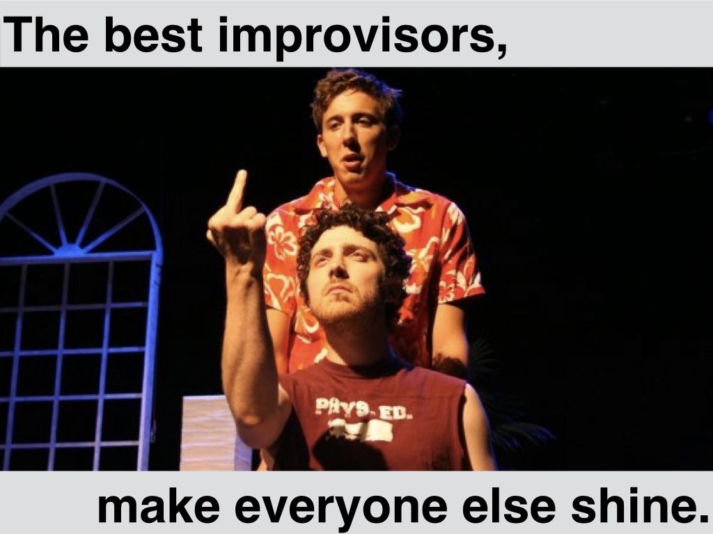 The first lesson I learned in improvisation is that “the best improv performers can improvise with anyone.” They make everyone else shine; this is not necessarily true about painters, musicians, mathematicians, or lawyers, but it is right about improvisors, and more importantly: leaders.