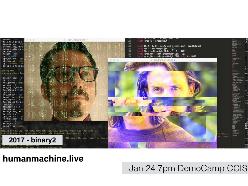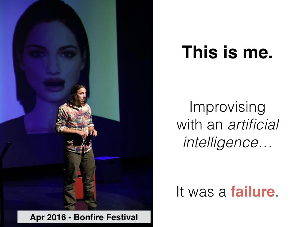 My name is Kory Mathewson; I am an improviser with Rapid Fire Theatre, and I am also a Ph.D. student in Computing Science studying artificial intelligence and machine learning at the University of Alberta.