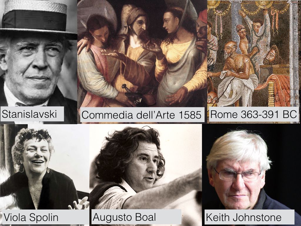The river ran deep. Documented improvisation starts in Rome in the 4th century BC with the Atellan Farce and mask work. Flash forward thousands of years and we learn about Commedia dell-Art(e) in the early 1600’s exploring character archetypes.
