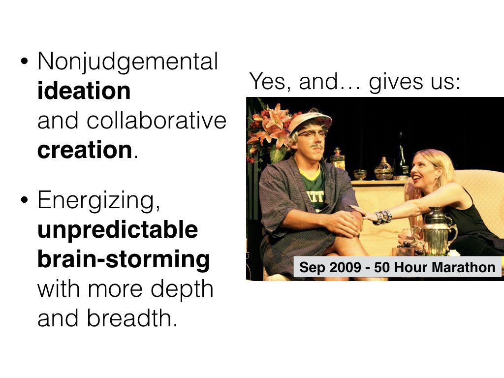 A series of yeses takes us somewhere. All it takes is one no to stop the momentum. But what do we get when we can say: “Yes, and…”