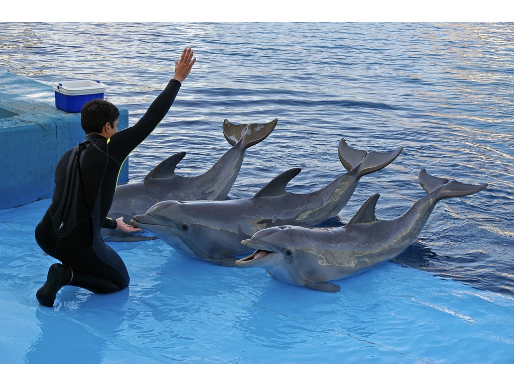 You can play this with a partner as well. Attempt to encourage your ‘dolphin’ to accomplish an unstated goal in the environment using only rewards as feedback.