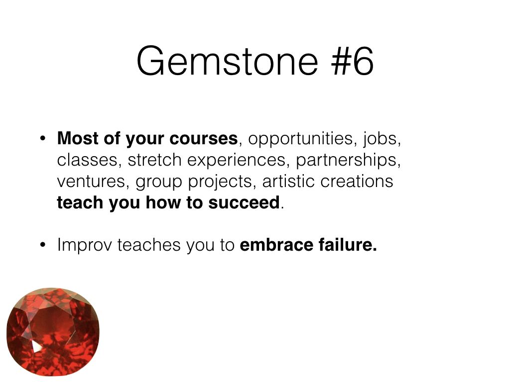 - Distil everything I have learned over 12 years of improvisation to 6 gemstones takeaways.