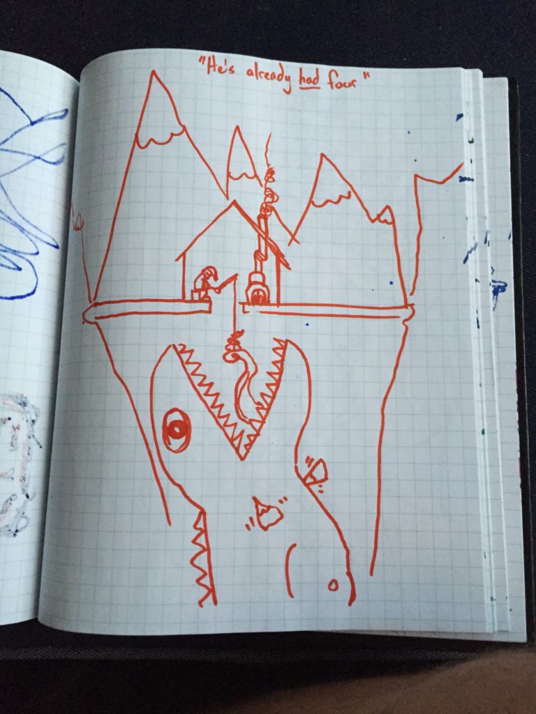 I collected so many of these doodles, from many different individuals. It is always surprising to see what people had ready to roll once they had a pen and a blank page. It seems like everyone has a small doodle … so I ask….what’s your doodle?